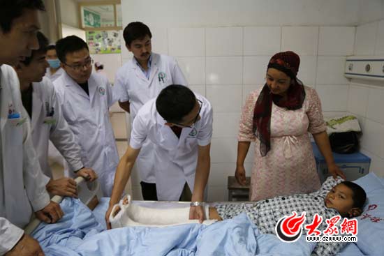“如果明年有機(jī)會(huì),我希望繼續(xù)來喀什,為老百姓看病治療。”王若義說,喀什地區(qū)的腦癱患者多主要原因是家庭沒有重視和做好新生兒接生工作,導(dǎo)致其患有新生兒缺氧缺血病,致使行動(dòng)不便。這種因腦癱引起的行動(dòng)不便主要表現(xiàn)兩種情況,一是“剪刀腿”,患者的兩個(gè)小腿走起路來像剪刀一樣交叉,致使走路左右搖擺;二是只用腳尖或腳后跟走路,身體不協(xié)調(diào)。通過手術(shù)治療可以緩解肌力平衡,糾正肌腱攣縮,使患者的腳放平。他認(rèn)為要想杜絕這類疾病的發(fā)生,首先要從源頭做起,重視起新生兒的接生工作,及時(shí)地去醫(yī)院看病問診,患者也要重視術(shù)后康復(fù)工作,及時(shí)去由山東援建的彩虹康復(fù)中心治療。