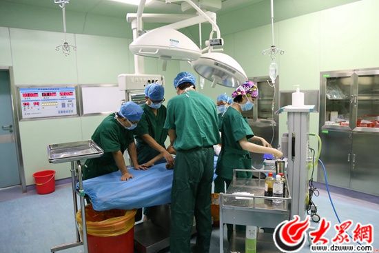 當地醫院醫護人員與山東醫療專家一起進行手術。