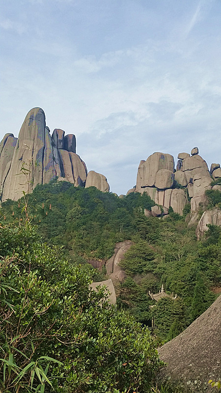 太姥山位于閩浙交界的福鼎境內,山巒俊秀、洞壑幽奇,怪石嵯峨,還有秀麗的溪瀑、優美的港灣、壯闊的海域、美麗的島嶼,古人譽之為“山海大觀”、“海上仙都”。更有詩贊之:“太姥無俗石,個個皆神工,隨人意所識,萬象在胸中。” 山上的“十八羅漢巖”、“仙人鋸板”、“夫妻峰”、“金貓撲鼠”、“玉猴照鏡”、“九鯉朝天”、“二佛談經”、“金龜爬壁”、“韋陀把天門”等三百六十景,真是“個個似神工”。