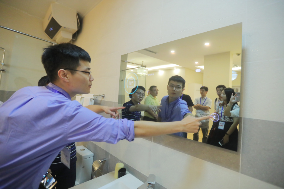 在智能家居展廳,海爾的一些整套公寓引起了采訪團記者們的興趣。尤其是一套占地僅為16平米的公寓樣板間,經過海爾設計師的設計,可以達到60多平米的實際使用效果,給記者留下了深刻印象。重慶華龍網首席記者徐焱的新房子正在裝修中,在看到了海爾出品的一款與熱水器綁定、可以隨時監控自己身體健康數據的智能浴鏡后,他迫不及待想要購買這款產品,“我覺得以后每天早晨在衛生間洗漱時,就能看到自己的身體健康指數是一種很棒的體驗。”