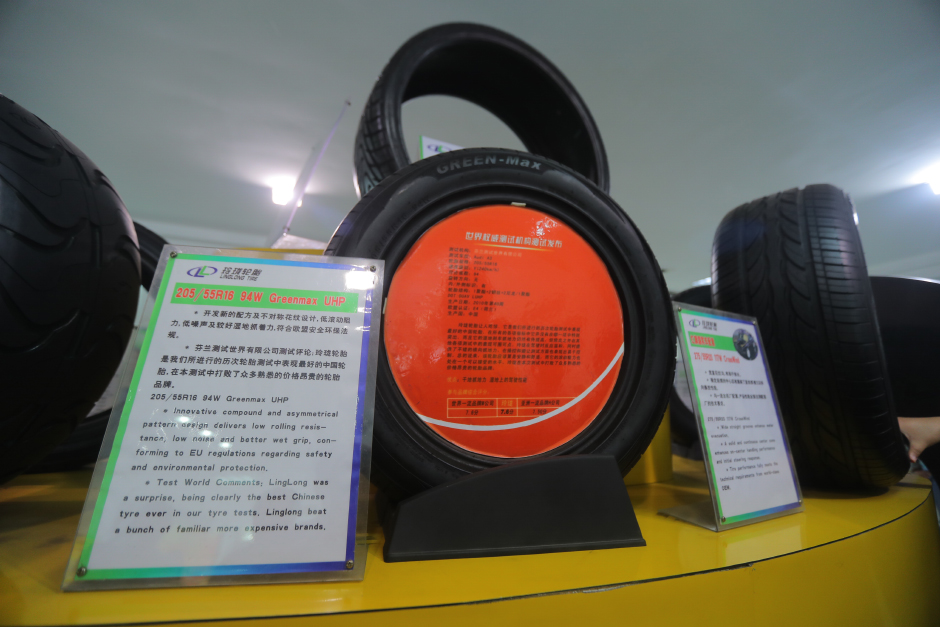 “這是我們公司生產(chǎn)的低斷面抗?jié)窕驮肼暢咝阅苻I車子午線輪胎,2015年它獲得了國家科技進步二等獎,這也是國內(nèi)輪胎行業(yè)迄今獲得的最高獎項。”今天上午,在玲瓏輪胎的展廳中,工作人員指著一款主要用于高端SUV和跑車的輪胎對采訪團記者們說。