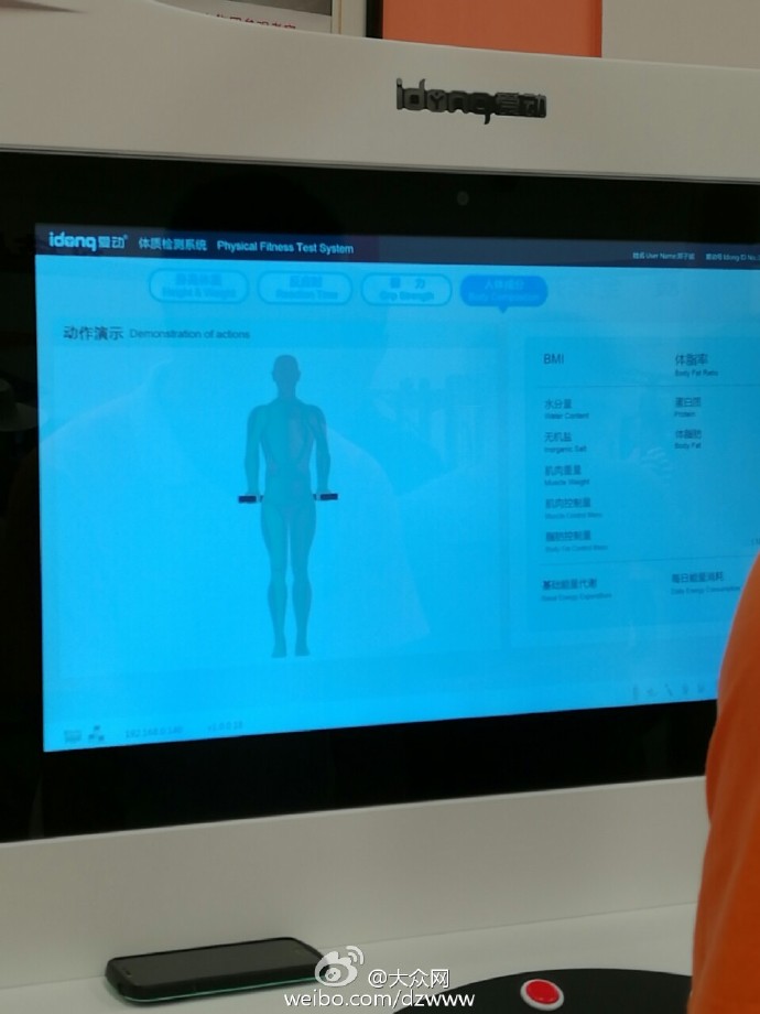 在智慧體育館中,有一個“體檢”器,站在上面,不僅能知道身高體重等基本信息,還能夠了解握力、身體各項指標(biāo)。
