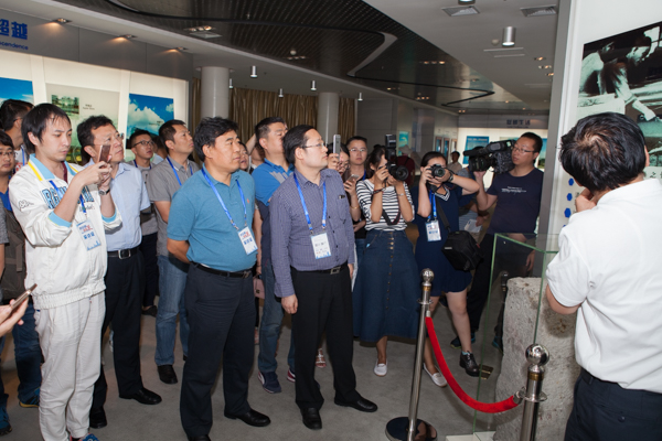 9月20日下午,第十二屆中國網絡媒體山東行西線采訪團參觀金晶玻璃集團展覽館,了解企業發展歷程。(撒偉 攝)