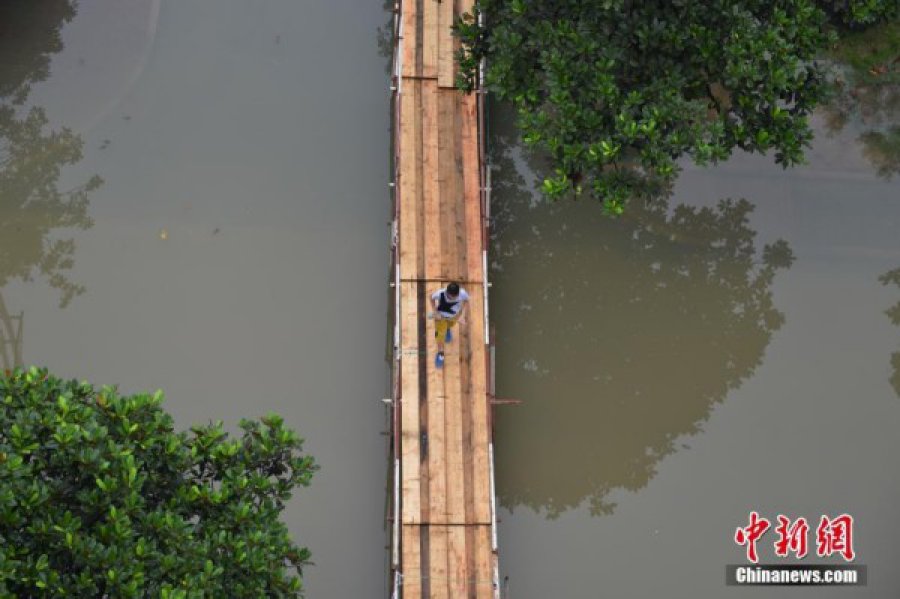 南京開啟“看海”模式 校園被淹搭棧道進出