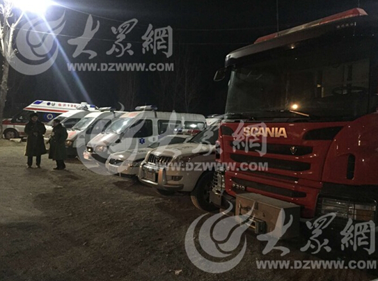 28日凌晨0:25,現(xiàn)場的各種救援車輛已經(jīng)嚴(yán)陣以待。