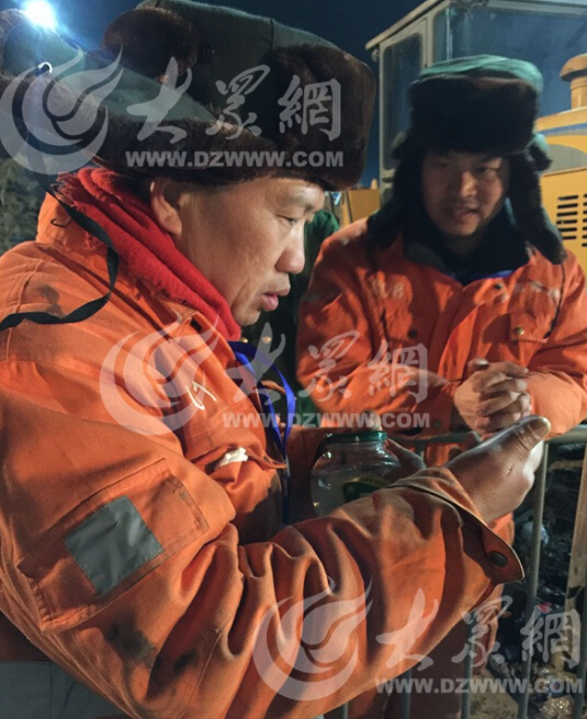 24日凌晨1點(diǎn)40分,室外溫度已經(jīng)接近零下20度,大眾網(wǎng)記者拿出手機(jī)記錄他們忙碌的身影,拍了幾張照片手就凍僵不聽使喚了,還剩半格電的手機(jī)居然直接被凍死機(jī)。
