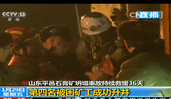 1月29日22點49分,隨著第4名被困礦工安全到達地面,被困在5號救生孔附近巷道里的4名礦工全部順利升井!截止到目前,此次事故共有15名井下被困礦工獲救,另外有1人已確認遇難,13人仍失聯。(央視)