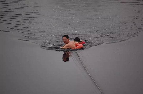 2011年2月27日15時許,周鵬像往常一樣駕車在河濱路巡邏,不經意的一瞥,驚得周鵬大叫“不好,有人落水!”只見河濱路東側的夾河里有個身著紅衣的女子在浮動。不等警車停穩,周鵬就推開車門一個箭步沖到河堤。此時,落水者雙眼緊閉,任由身體逐漸被河水吞噬,河堤下,前來營救的民警和消防官兵正準備救生設備,圍觀群眾的心都提到了嗓子眼上。“我下去!”還沒等在場人員反應過來,周鵬已經脫去外套,一頭扎進冰冷刺骨的河水中,奮力向50米開外的落水者游去。一米、兩米……眼看就要抓住落水者的手時,落水者的身體突然一下子沉入水底,容不得多想,周鵬深吸一口氣,一個猛子下去將落水女子托出水面,托著奄奄一息的落水者,周鵬使盡全身力氣以最快的速度游回岸邊,落水者得救了。“福山公安好樣的!”圍觀人群中爆發出叫好聲和歡呼聲。輕生婦女獲救后,周鵬的兩個胳膊因長時間托舉已經筋疲力盡,他臉色鐵青,渾身凍得麻木,坐在堤壩上,半天才緩過神來。當時,正值隆冬季節,內夾河仍然浮冰一片,周鵬渾身上下全部濕透,厚厚棉衣上結了一層冰碴,眉毛、胡須瞬間就結成一層冰霜。《煙臺晚報》、《平安山東新聞網》分別以“托舉哥”救起落水妹、“冰凍哥”好樣的為題,宣傳報道了周鵬見義勇為、舍身救人的感人事跡,產生強烈社會反響。從警以來,周鵬同志累計救助困難群眾1100人次,資助5名困難學生完成了從小學到高中的學業,被老百姓稱為熱心的“活雷鋒”。