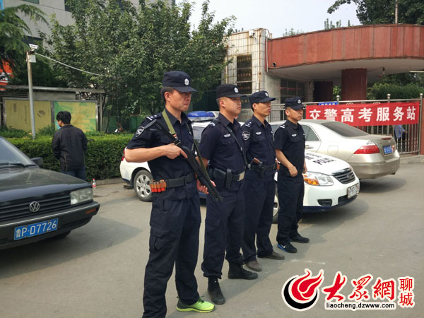 大眾網聊城6月7日訊(記者 侯曉)6月7日,高考拉開大幕。在外國語學校門口,聊城特警荷槍實彈為考生保駕護航,確保不發生任何影響高考的突發事件。據聊城特警支隊二大隊副大隊長穆利介紹,特警的主要作用是為防止周邊突發事件的發生,為高考創造安靜的環境。