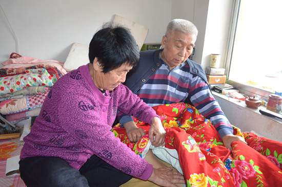 從那以后,王業(yè)秀傾其全力照顧丈夫,家里的積蓄全部花上了,生活已經(jīng)捉襟見肘,連治療費(fèi)用都只能跟親戚朋友借。就算這樣,她仍然省吃儉用,想盡辦法給丈夫加營(yíng)養(yǎng),平常哪怕有一口好吃的也是留給丈夫吃。同時(shí),在照顧丈夫的生活起居上,王業(yè)秀更是付出了巨大艱辛。“剛出這事的時(shí)候,他老是想不開,想過自殺,所以晚上俺都不敢睡沉,就怕他出事。”王業(yè)秀說。丈夫癱瘓后的40年來,王業(yè)秀沒有睡過一個(gè)安穩(wěn)覺,除了擔(dān)心丈夫,她每晚還至少要起來兩三次,一邊幫丈夫翻身,一邊檢查丈夫大小便情況,“每天要幫他翻幾次身,擦洗、換尿布,換洗不及時(shí)很容易生褥瘡!蓖鯓I(yè)秀說,而每次給丈夫翻身,都要費(fèi)盡她全身力氣,一遍下來,王業(yè)秀經(jīng)常累得氣喘吁吁。不僅如此,每天王業(yè)秀一早就要起床收拾屋子,再給丈夫翻一次身、擦一遍身體,還要為丈夫做早飯。平時(shí)她還堅(jiān)持為丈夫按摩,多年下來,王業(yè)秀已經(jīng)掌握了許多按摩技巧,手法比專業(yè)按摩師一點(diǎn)也不差。天氣暖和的時(shí)候,她就推著丈夫出去溜達(dá),和鄰居聊天,陪丈夫解悶。這種日子,她一過就是40年,40年的堅(jiān)守和照顧,王業(yè)秀從無怨言、從不后悔。在她的悉心照料下,丈夫也逐漸從陰影里走出來,病情也趨于穩(wěn)定。