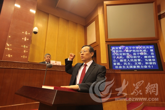 山東省人大常委會法制工作委員會主任周杰向憲法莊嚴宣誓。