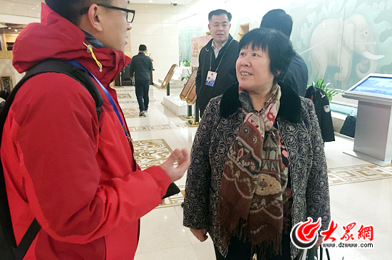 省人大代表劉英才(右)向大會報到后接受大眾網記者采訪,她關注“全面二孩”的相關問題。(盛堃 攝)