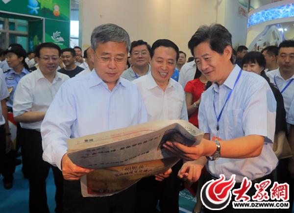8月25日,省委副書記、省長郭樹清到文博會現(xiàn)場參觀大眾報業(yè)集團展區(qū),省委副書記龔正,省委常委、宣傳部長孫守剛等陪同參觀。大眾網(wǎng)記者 王長坤 攝
