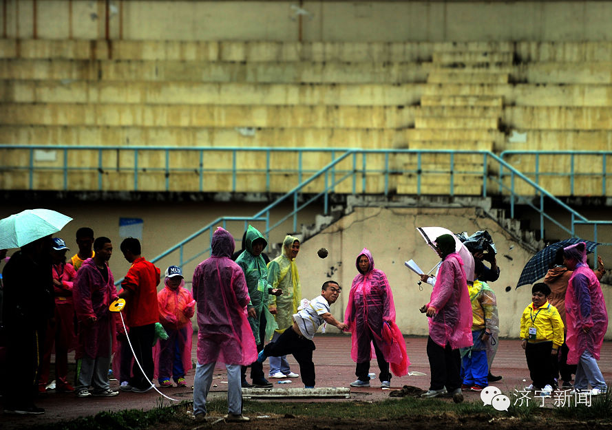 2014年4月26日,雨中,一位殘疾人運動員使出渾身的勁將鉛球扔出了兩米多遠……沒有人小瞧他,迎來的是隊友們的加油聲。當日,濟南市殘疾人運動會在小雨中舉行。能容納數千人的山東師范大學體育場看臺上沒有一個觀眾,但前來參加運動會的運動員們卻絲毫不懈怠,盡管無人喝彩,但他們卻個個奮勇爭先,活出最精彩的自己。齊魯晚報記者左慶攝