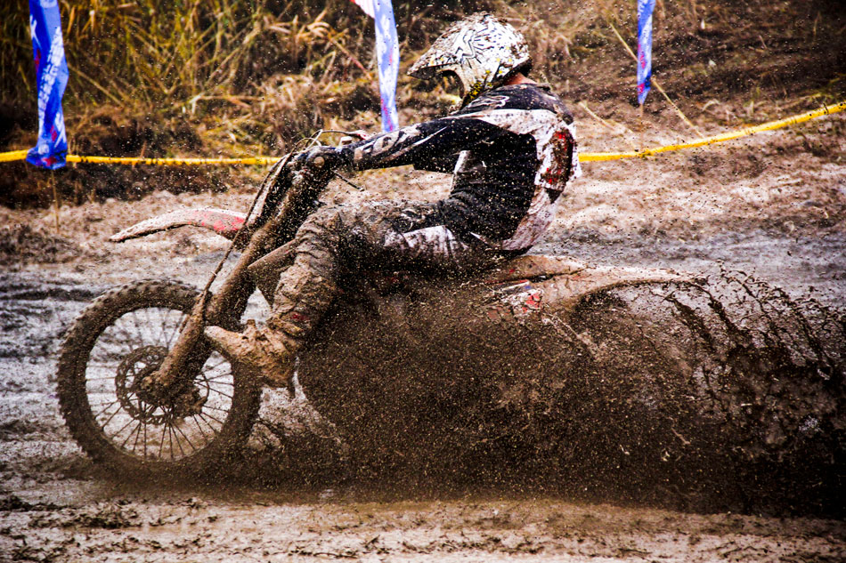 一場巔峰對決即將打響,一輛輛經過專業(yè)改裝的越野摩托車伴著隆隆的機車聲和高高卷起的泥水在賽場內飛馳、跳躍,摩托賽車的閃轉彎挪、奮力騰躍、彎道超車都讓現場冒雨觀看的觀眾大飽眼福。雨越下越密,每一個賽道上的障礙都變得更加困難,但卻絲毫沒有減滅選手的勁頭,尤其對于新秀組來講,作為越野摩托的超級愛好者,在泥地比賽的經驗較少,七圈的賽程愈發(fā)艱難,摩托車手也越來越多的出現滑倒與機車進水的狀況,但是每一位選手都在全力以赴如通鋼鐵戰(zhàn)士一般堅持到了最后,在這樣的惡劣天氣與環(huán)境中,更顯現出摩托車手的專業(yè)素質與體育精神。
