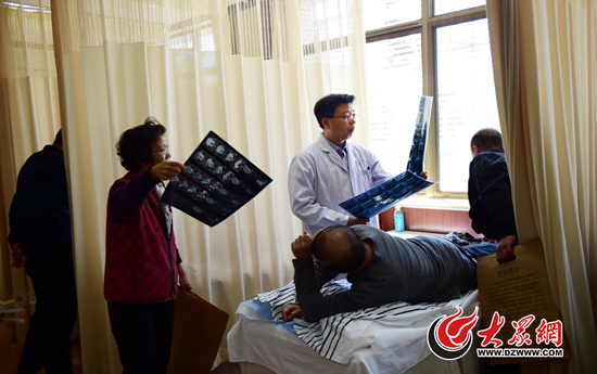 “片子上顯示的問題很清楚了,沒必要再做其它檢查,兩周能治好,跟你一起來的那位老先生得20多天。”4月15日下午,兩位江蘇沛縣的腰腿病患者專程來找?guī)煴蚩床。瑤煴蛟谠敿氃儐柡驮\斷病情后,當場列出了詳細的治療周期和方案。