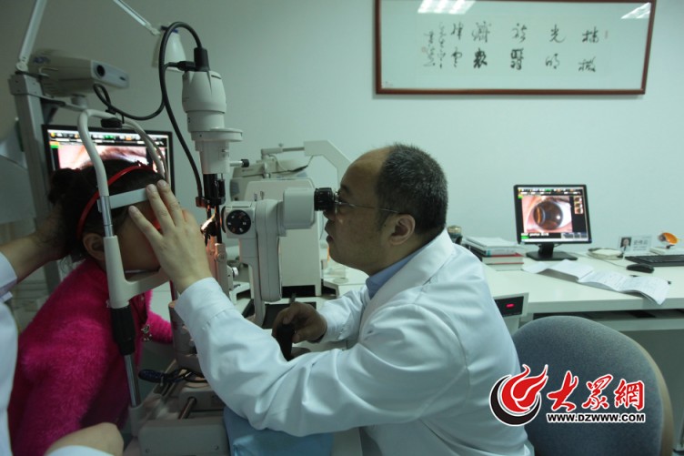 在門診病人中,并不是所有患者都能踏實地坐在裂隙燈顯微鏡前接受檢查。一位媽媽抱著僅7個半月大的寶寶進入了診室,眼前怪模怪樣的裂隙燈顯微鏡讓孩子有些驚慌,怎么也不肯接受檢查。這位年輕媽媽有些束手無策,眼看要放棄此次檢查。史偉云一邊嘴里哄著,一邊用手里的小手電吸引著孩子的目光,一旁的護士也趕緊從兜里掏出鑰匙,晃動著弄出聲響吸引孩子的注意力。醫生護士的默契配合,爭取到了孩子幾十秒的安靜時間,史偉云麻利地做完了檢查,還不忘提醒這位媽媽要“把孩子的指甲剪一下,小心眼睛癢時抓破”。