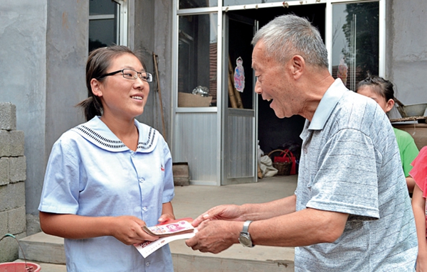 2013 年,李振華給受資助大學生任紀蘭送去5000 元學費