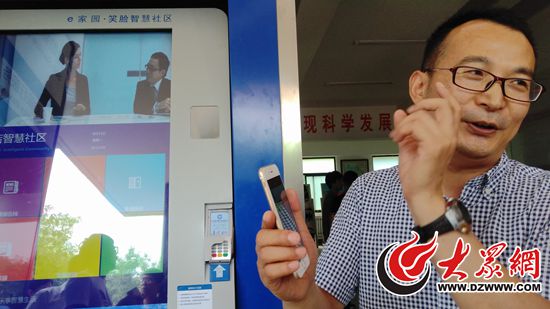 工作人員向記者展示e家園笑臉智慧社區及手機笑臉APP
