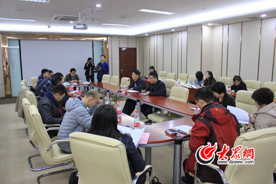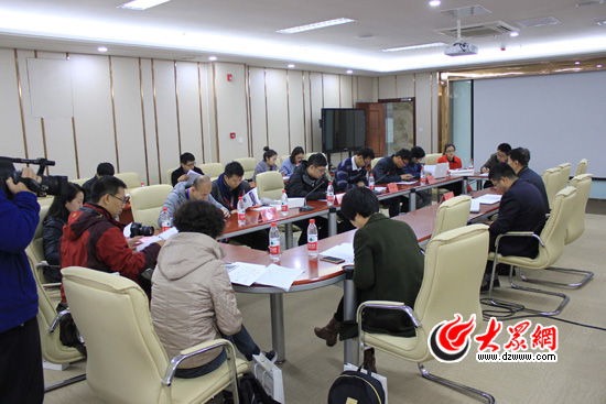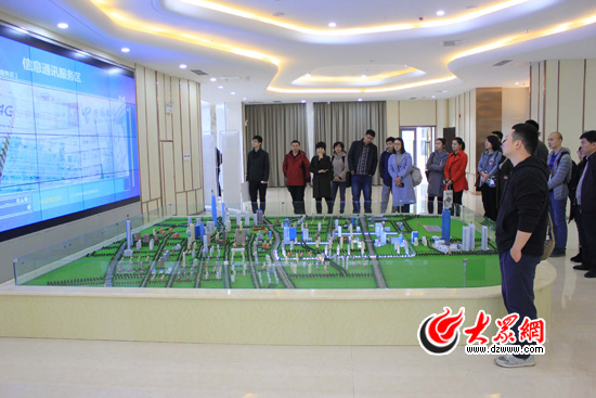 濟南金融商務中心區(市中區)服務中心主任張繼忠向采訪團介紹山東新金融產業園情況。