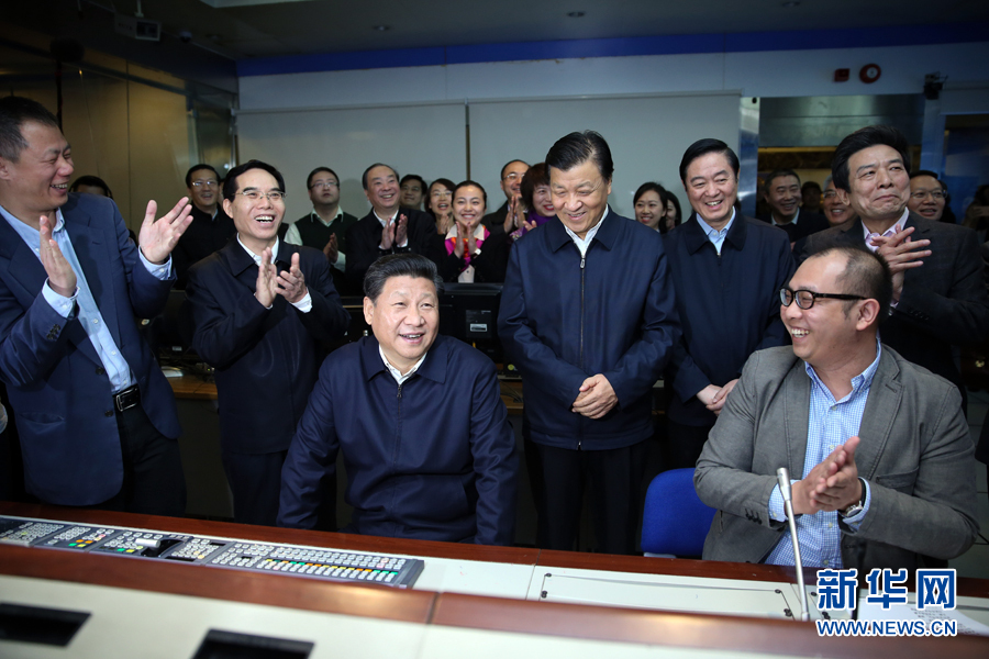 2月19日,中共中央總書(shū)記、國(guó)家主席、中央軍委主席習(xí)近平在北京主持召開(kāi)黨的新聞?shì)浾摴ぷ髯剷?huì),并到中央新聞單位調(diào)研。這是習(xí)近平在中央電視臺(tái)《新聞聯(lián)播》導(dǎo)控室向工作人員了解新聞制作導(dǎo)播流程。新華社記者 蘭紅光 攝