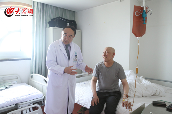 張金成(化名),是一名來自云南昆明的肺癌患者,受盡惡性腫瘤折磨,曾輾轉多家醫院。他選擇過“朋友介紹”、選擇過“網絡推薦”,在北京、上海等多家醫院都曾治療過,但頭發一直在掉,病情卻未曾減輕,最后他來到了山東省腫瘤醫院。5月5日,在山東省腫瘤醫院院長于金明查房期間,征得張金成同意后,大眾網記者跟隨于金明來到了他的病房。