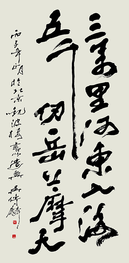 吳傳麟幼年時(shí)即受教于關(guān)友聲、劉魯生、黑伯龍、岳祥書(shū)、王天池、金棻諸大家,青年時(shí)期成為李苦禪先生的入室弟子,并得到葉淺予、郭味蕖、王雪濤、宗其香、吳作人、肖淑芳、惠孝同、秦仲文、吳鏡汀、雷圭元、張仃、常莎娜、田世光、俞致貞等先生傳藝,中外美術(shù)史及文學(xué)寫(xiě)作得到尚愛(ài)松、吳達(dá)志、奚靜之、王家樹(shù)諸先生的悉心教誨。他的藝術(shù)創(chuàng)作以國(guó)畫(huà)為主,山水、花鳥(niǎo)、人物、書(shū)法均有大成。其作品平實(shí)中透出高雅,深厚的傳統(tǒng)繪畫(huà)功力中洋溢著強(qiáng)烈的時(shí)代氣息,現(xiàn)實(shí)主義與浪漫主義相結(jié)合、與時(shí)俱進(jìn)、雅俗共賞是其作品的特色。他的國(guó)畫(huà)作品以書(shū)法筆致入畫(huà)、以勢(shì)取勝,用筆有序,繁而不亂,濃墨、淡墨、潑墨、積墨、焦墨與不同筆法、筆形、筆感各得其所,在多次皴擦渲染中,造就了境界蒼茫、渾然的效果,具有鮮明的個(gè)人特色,開(kāi)創(chuàng)了一代畫(huà)風(fēng)。他的書(shū)法作品氣魄恢弘而俊朗、舒峭卻又不失拙意;綿里藏針、細(xì)中寓柔、柔中見(jiàn)剛;潤(rùn)而滿,不滯、不滑、骨力洞達(dá)卻將霸悍之氣藏于水墨之間不露痕跡,不愧是一代名家風(fēng)范。