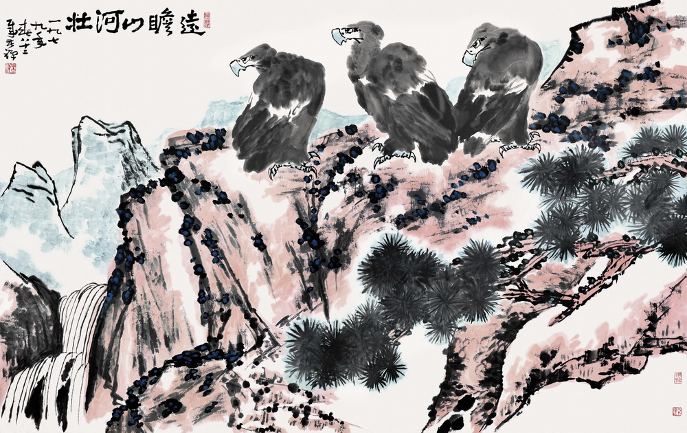 《松鷹》305x190 1979年作 款識:遠(yuǎn)瞻山河壯 1979年春,八十二歲,苦禪