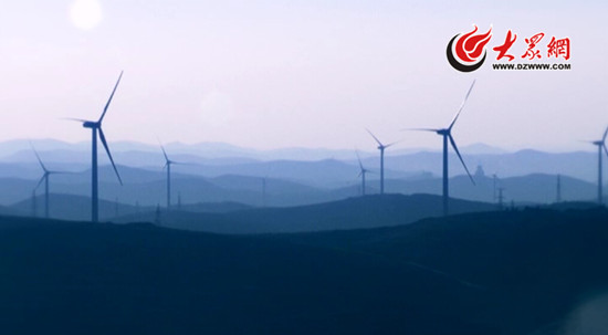 大唐新能源山東公司澤庫風(fēng)電場風(fēng)機遠(yuǎn)景。