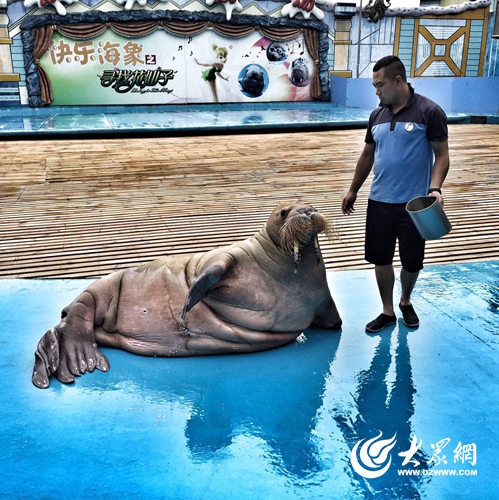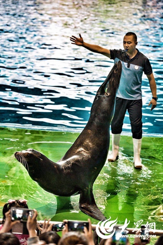 郭曉東是一名“80后”,和其他年輕人一樣,他有理想,有沖勁,想找到自己的人生價值。郭曉東加入到極地海洋世界7年的時間里,海獅、海豹、白鯨、海豚都馴養(yǎng)過。“動物們都是有靈性的,喂食、陪玩耍,慢慢的就和他們培養(yǎng)出了感情。”郭曉東告訴大眾網(wǎng)記者說,第一次登臺表演時,當時觀眾差不多有近千人,他緊張到?jīng)]有勇氣看臺下的觀眾,一直看著他的‘搭檔’,“估計小家伙感覺到我有點不對頭,乖乖地盯著我,我仿佛感受到了它對我的鼓勵,接下來的表演非常順利。表演結束后臺下掌聲如潮,我想這份喜悅和肯定少不了我‘搭檔’的功勞”。
