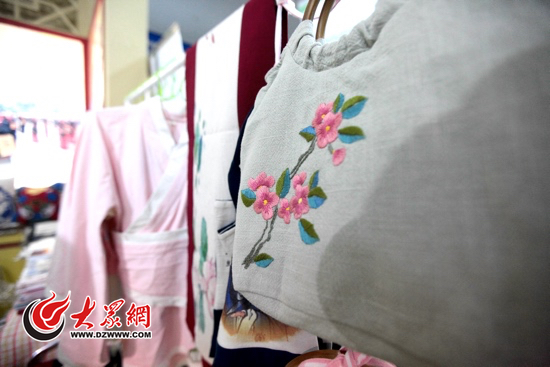 魯錦技藝是國家級非物質文化遺產保護項目,對應傳統(tǒng)的“女紅”,近年來受到熱愛傳統(tǒng)文化人士的追捧。現場展示的魯錦圍巾、提包、衣物、抱枕等選材自然、手工制作、造型古樸,被眾多觀眾和采購商青睞。