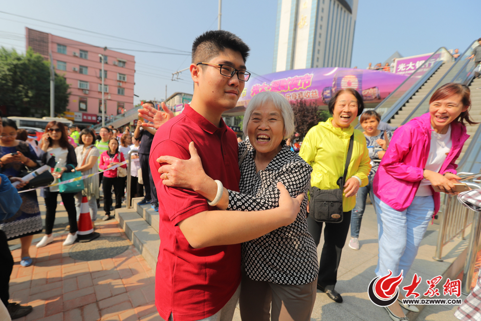 6月7日上午,山東濟(jì)南,在山東省實(shí)驗(yàn)考點(diǎn)外,一名考生的姥姥給孩子一個(gè)大大的擁抱,并鼓勵(lì)孩子“高考加油”。大眾網(wǎng)記者 王長(zhǎng)坤 攝