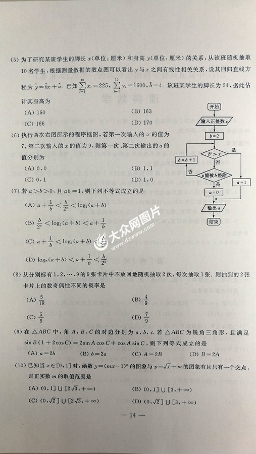 2017年山東高考數學理科試題及答案