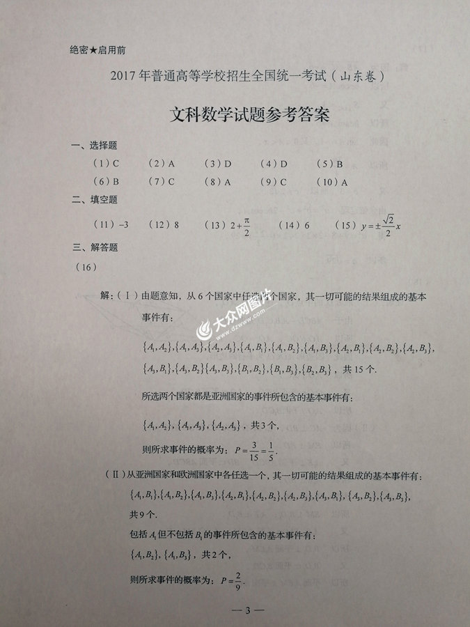 大眾網濟南6月8日訊 6月8日下午,2017年山東高考落下帷幕。當天下午6點,山東省教育廳就今年高考實施情況舉行新聞發布會,大眾網第一時間對試題及答案予以公布。
