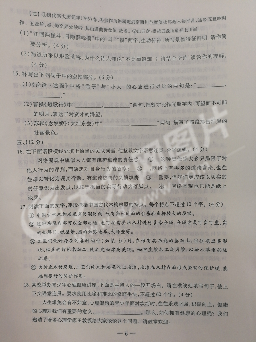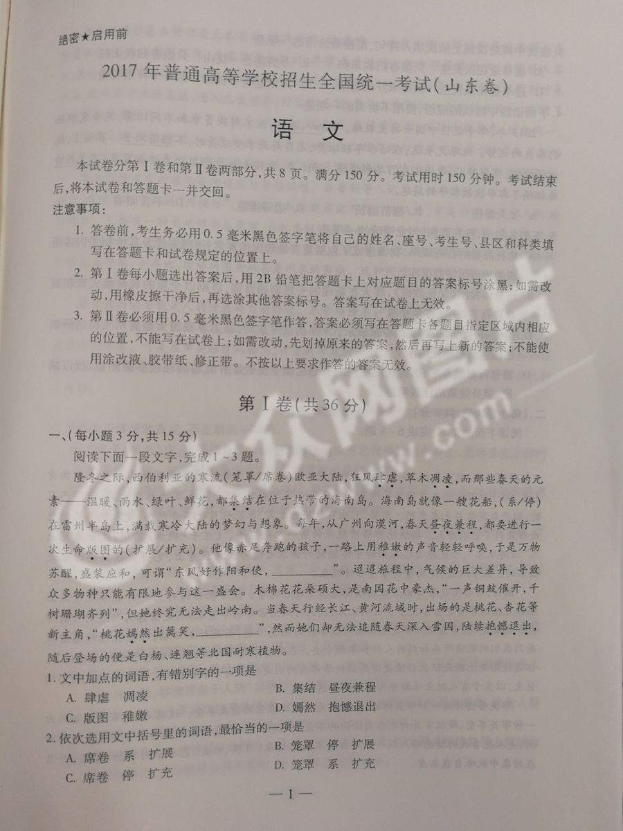 2017年山東高考語(yǔ)文試題及答案