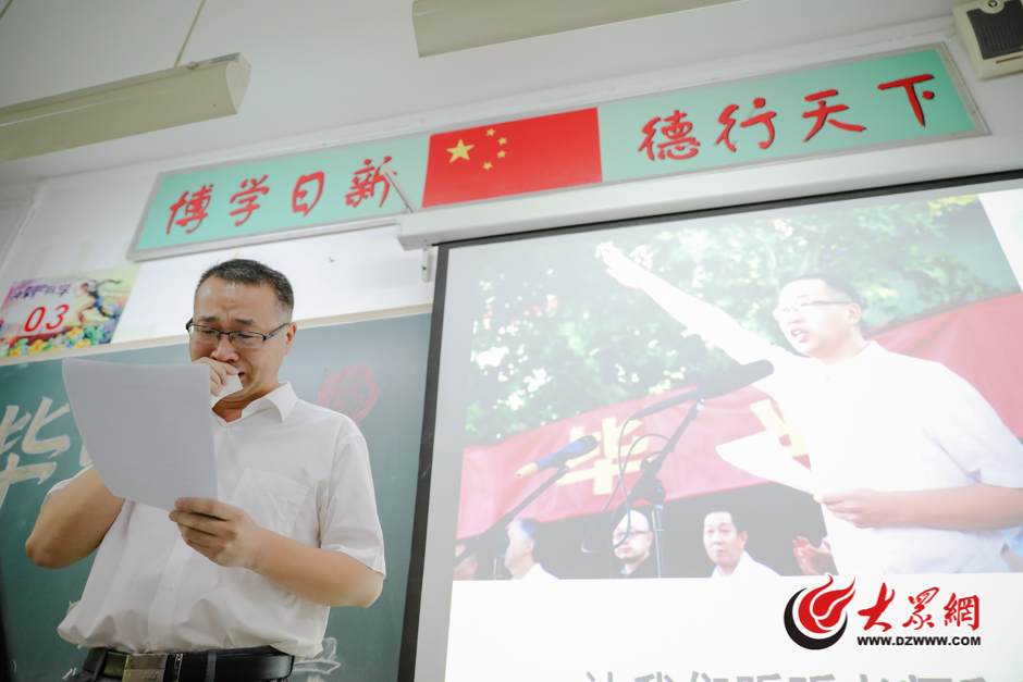 山東省實驗中學高三一班班主任呂秀亭老師為班里的學生們上“最后一課”,現場,學生和老師都哭成了淚人。大眾網記者 王長坤 攝
