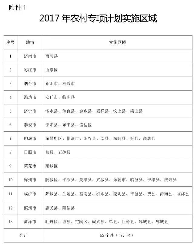 圖為52個具備報考農村專項志愿計劃的財政困難縣具體名單