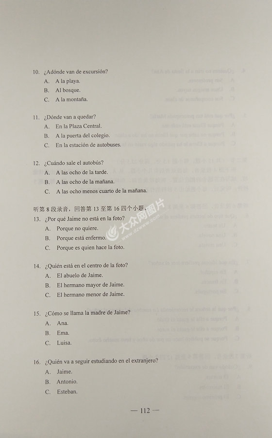 2017年山東高考西班牙語試題及答案