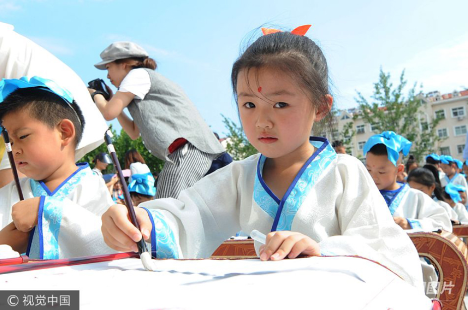 8月28日,山東省青島市同安路小學開學首日,部分新生身著漢服來到市北區漢畫像磚博物館開始了他們入學的第一課,聽講解員介紹漢文化傳統的由來,并親手學習制作漢畫像磚的技藝,體會5000多年的中華文明史,從中領會中華文化的價值精髓,增強民族自豪感。 [詳細]