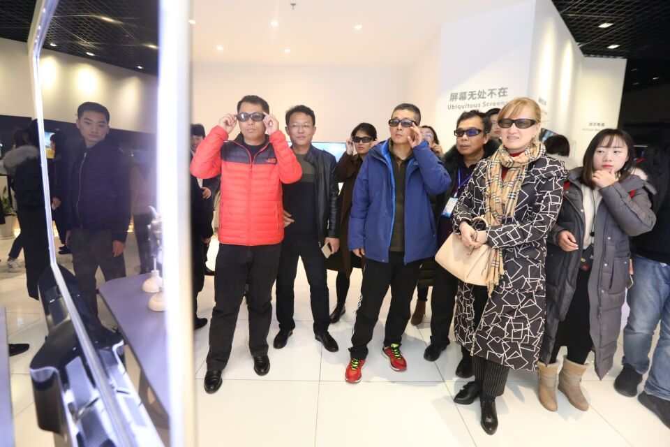 采訪團記者體驗海信集團制造的透明3D電視。