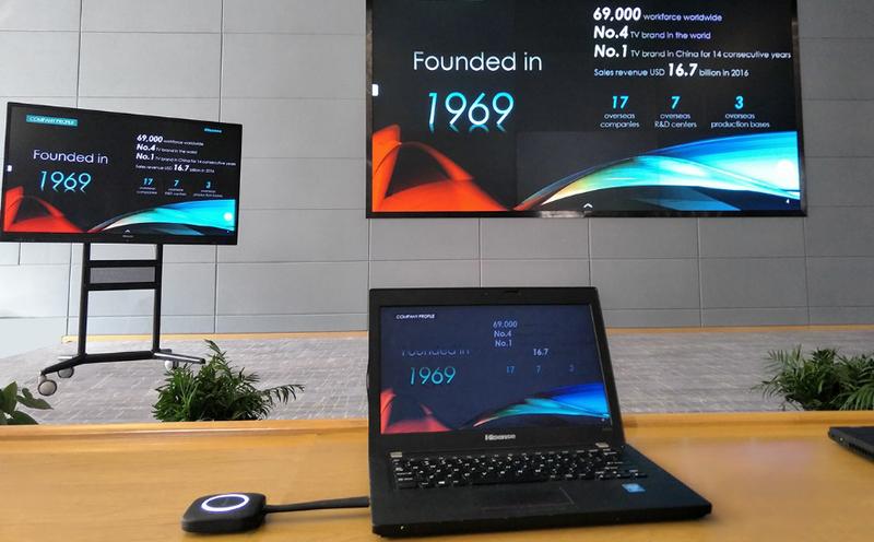海信商用顯示公司副總經(jīng)理李學釗介紹,在傳屏上,產(chǎn)品支持最大傳輸1080p* 30幀/秒,其內(nèi)置雙頻WiFi AP,無需外置無線路由,與會者可輕松聯(lián)網(wǎng)自由傳屏。與普通傳屏技術相比,海信傳屏技術具有配置連接迅速、傳屏幾乎無時延的強大優(yōu)勢。
