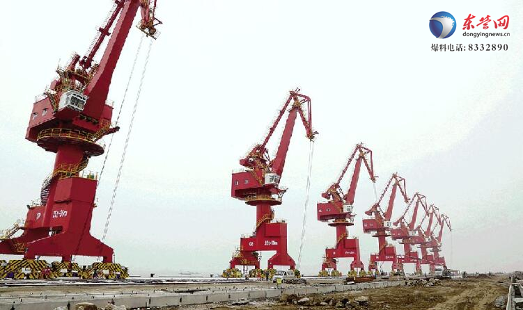 7月,七臺嶄新的門機到崗,現已全部安裝完成。這也為臨港產業打下堅實基礎。