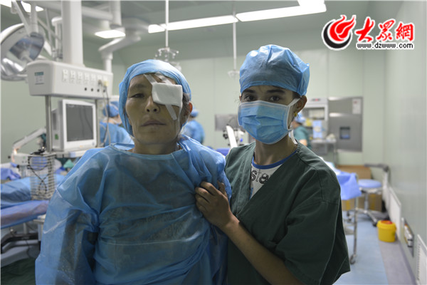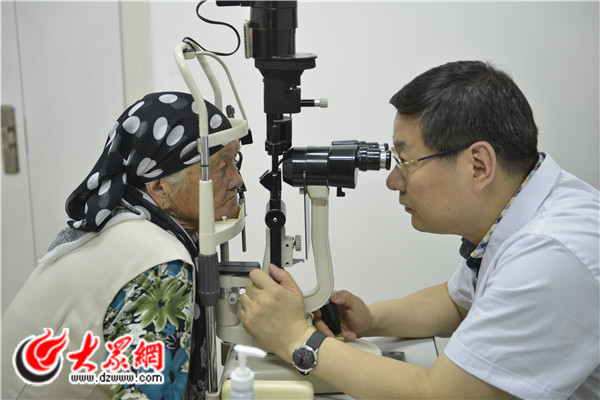 山東大學第二醫院眼科主任張晗為79歲的帕提古麗·祖農做術前最終檢查 攝影/王厚江