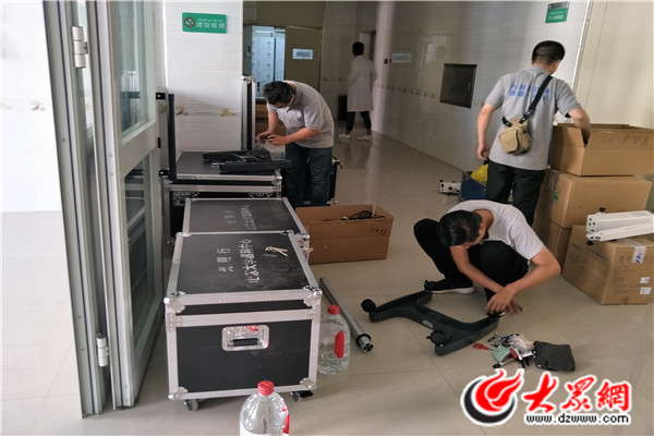 山大二院眼科專家王磊、魏超,設備調試人員李公偉進行手術設備拆裝調試