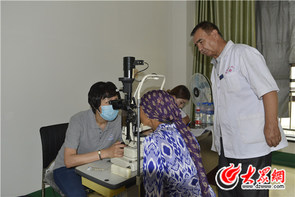 本次山東援疆醫療隊先遣組成員—齊魯石化醫院集團中心醫院眼科主任丁曉艷為患者開展眼底檢查