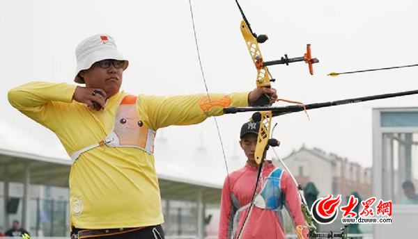 青島小伙王大鵬連奪男子射箭個人、射箭混合團體、射箭男子團體三塊金牌。