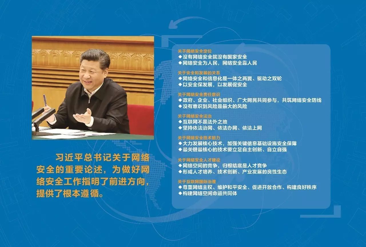 成就展從網絡安全定位、安全和發展的關系、網絡安全責任意識、網絡安全法治、網絡安全技術能力、網絡安全人才建設、互聯網國際治理等多個方面梳理 習近平總書記關于網絡安全的重要論述