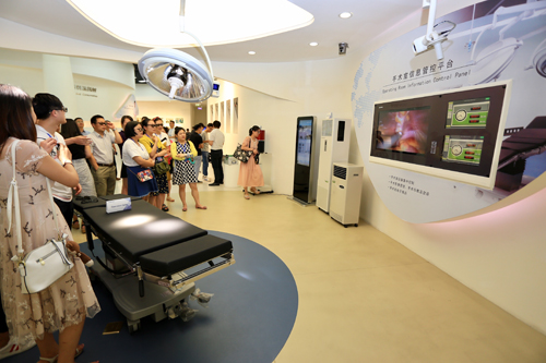 走進新華醫療展廳,全自動血型分析儀、手術室信息管控平臺、放射診療等高新技術設備一下子就吸引了采訪團記者的注意。