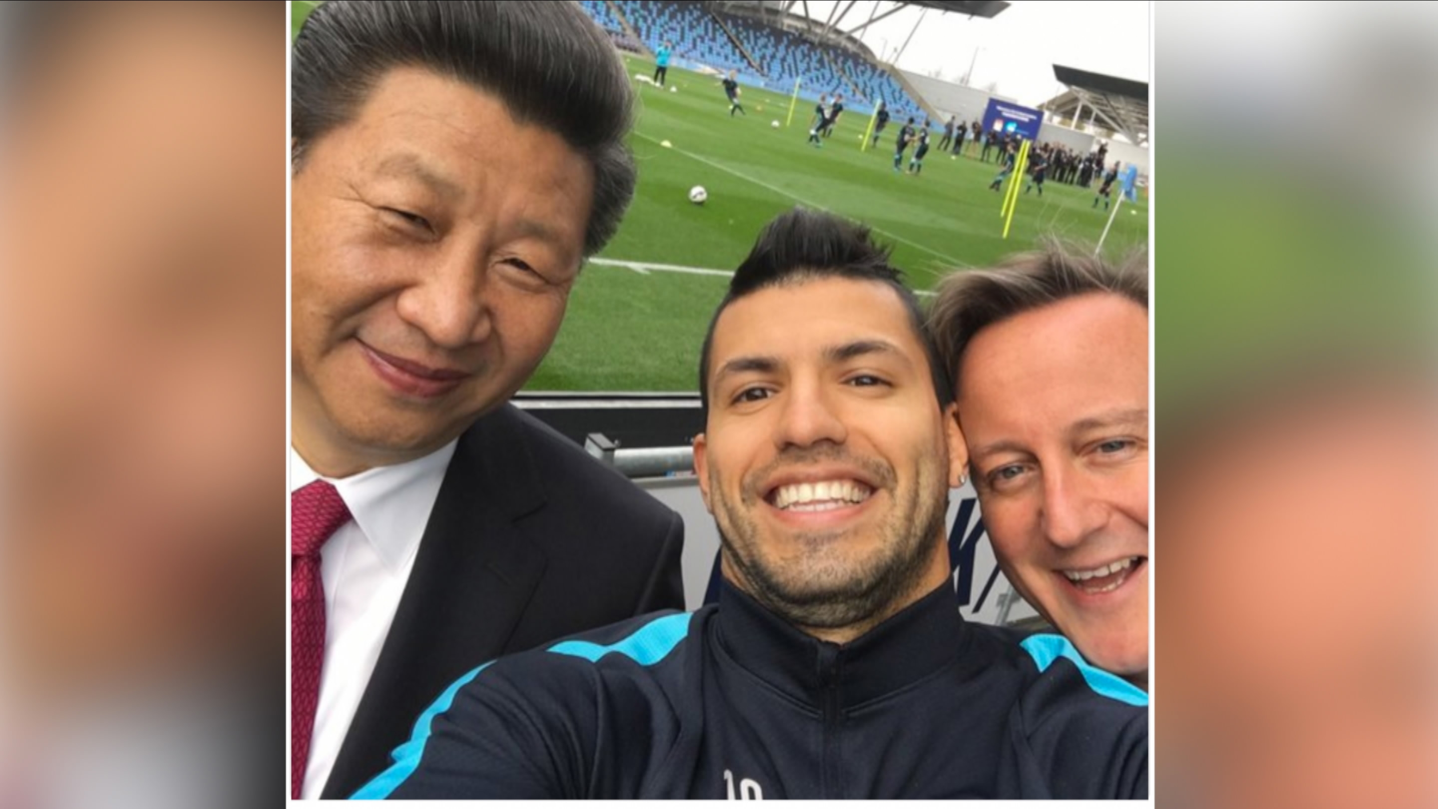 Xi’s a big fan of all kinds of sports. He paid a visit to the Manchester City Football Club and took a selfie with Cameron and Manchester City star Sergio Aguero.