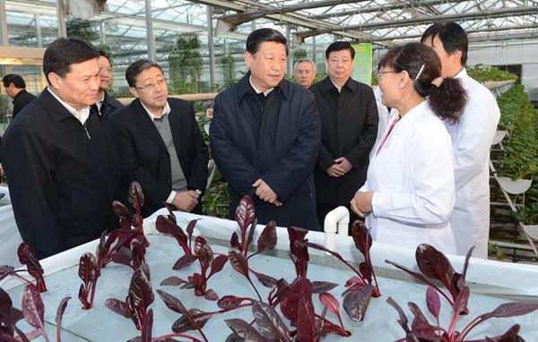 2013年11月27日,習近平總書記視察山東省農科院。“我當時正在溫室里觀察無土蔬菜的生長情況!蓖跏绶艺f,習總書記一走進溫室,便對蔬菜水培產生了很大的興趣。“總書記還很關心地問,水培蔬菜現在成本是多少,老百姓是不是也可以用!蓖跏绶艺f,當得知這項技術既能夠節水省肥,還能比土壤栽培的蔬菜多收好幾季時,總書記很高興。看完水培后,習總書記又觀看了立體架式的無土栽培。